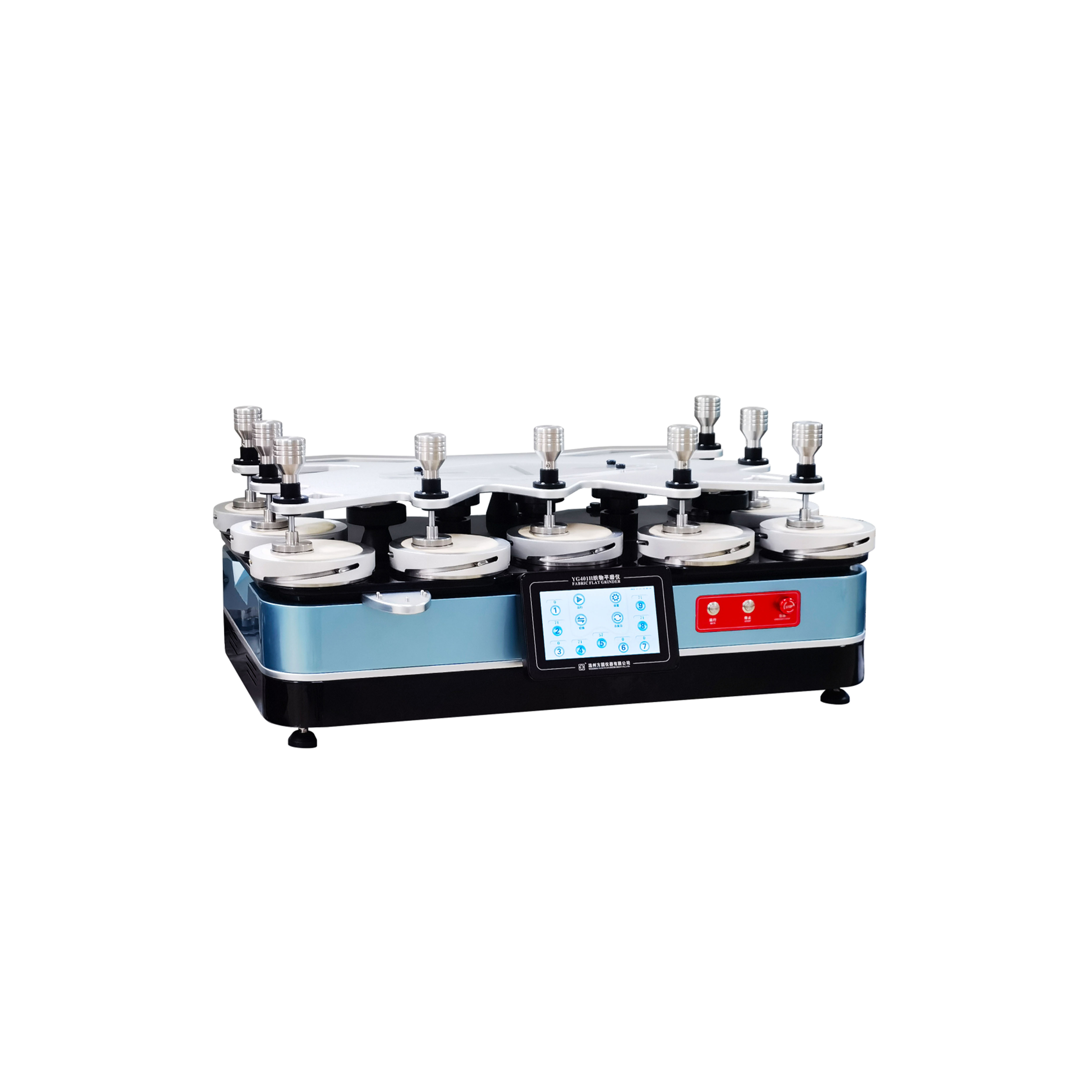 YG401F-II織物平磨儀(九工位) GB/T4802.2-2008,GB/T13775,GB/T21196.1,GB/T21196.2,GB/T21196.3,GB/T21196.4;FZ/T20020;ISO12945.2、12947;ASTM D 4966、4970、IWS TM112等標(biāo)準(zhǔn)。